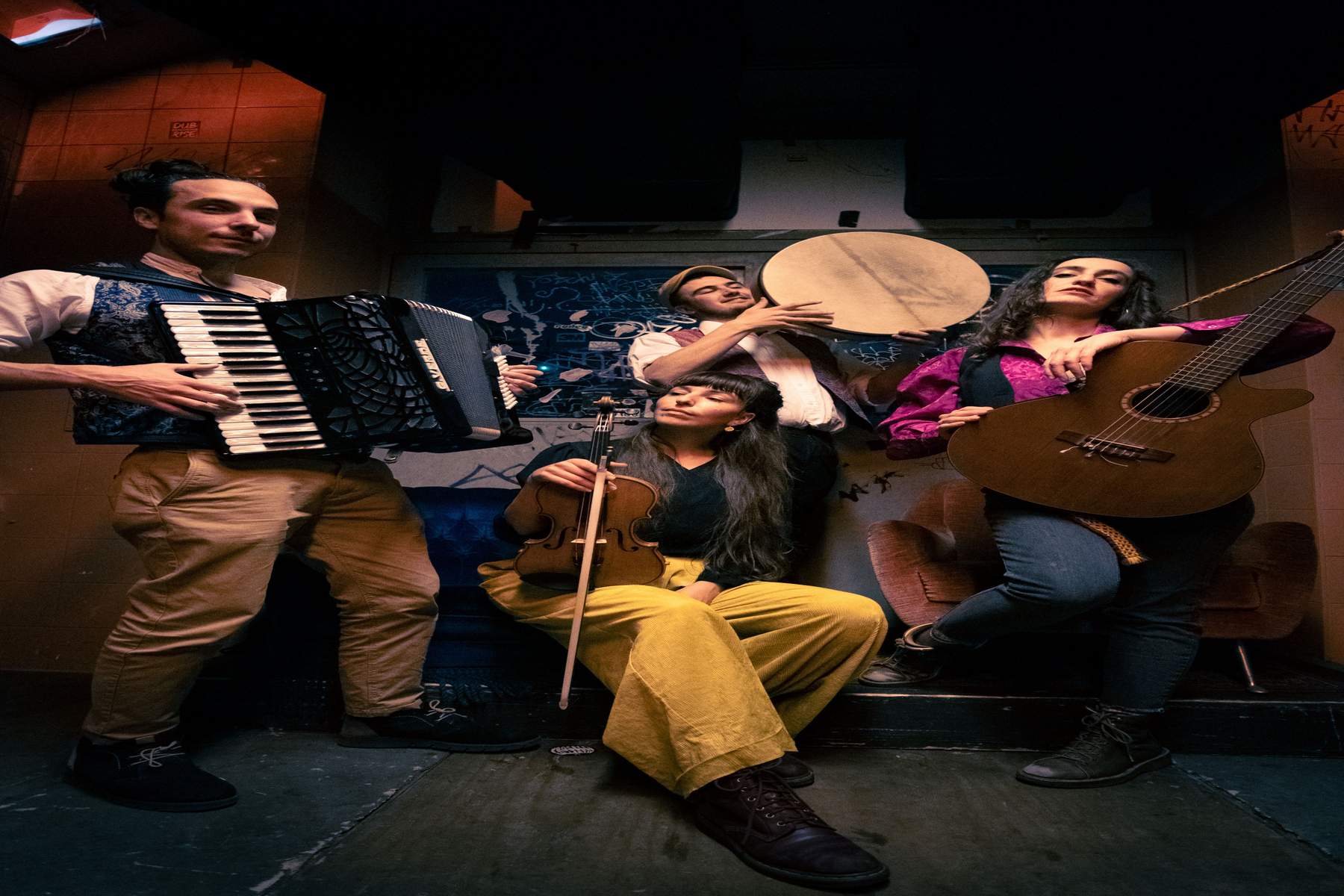 Bailenga was born in Alessandria (North West Italy) in 2021 from the desire to bring the dimension of the popular festival to every place, offering a repertoire that is both danceable and listenable. We create events where people of all ages meet and can join in dancing and having fun in an evening that is always changing, to meet an ever-changing audience. Our repertoire is entirely composed of pieces of Italian and world popular music, arranged to create dance party events. We range from classical Neapolitan music adapted to Balfolk rhythms (polkas, waltzes, Scottish, chapelloise, etc.), to various musical traditions of Southern Italy (tammurriata campana, pizzica salentina, Sicilian tarantella, Sardinian, arbereshe), to rearrangements of work songs from Northern, Central and Southern Italy, to popular songs of other origins (Albanian, Greek, Kurdish, Haitian). The term “Bailenga” comes from the union of the Spanish word “baile” (dance) with “balenga”, a dialect term of Piedmontese and Venetian origins that means “bizarre”, “crazy”, displaced”. We like it because we think that music and dance nourish and stimulate the expression of the “craziest” sides of each person, through which freedom of expression, creativity and rebellion against flatness are manifested.