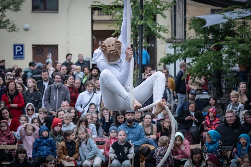 Between water and air, between shadow and light – a creature appears, one that cannot be easily named. Its skin is sensitive to the world’s touch, its movements are tremors of longing to be accepted. A quiet amphibian, half dream, half instinct. Searching for a place – on a branch, in the air… This short expressive etude with mask and aerial acrobatics explores the fragility of identity and the need to belong. A wordless performance, yet the body asks: Where do I belong, if I am neither fish nor bird?