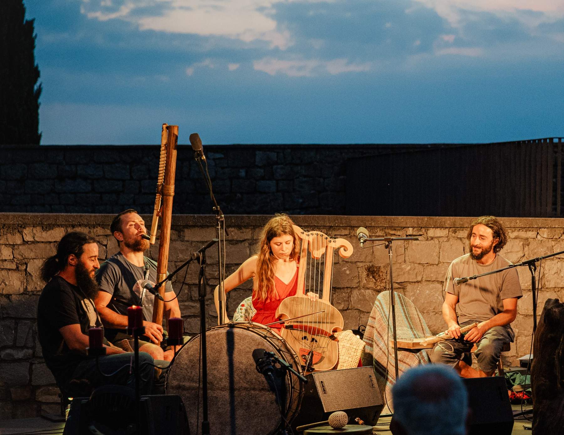 Trš is an ancient trunk without branches—but it’s also the name of a musical project using instruments made from the wood of a fir tree that grew in Čadrg at the end of the Stone Age, precisely 6,560 years ago. The group of musicians formed spontaneously during the Midsummer Night celebration in Čadrg, where they first played for the fir tree and the marsh where its trunk was found. The collection of instruments is constantly expanding, crafted by both Trš and their friends. Their music shifts between dreamy repetitions and powerful crashes, always drawing inspiration from the sound of the Stone Age.
